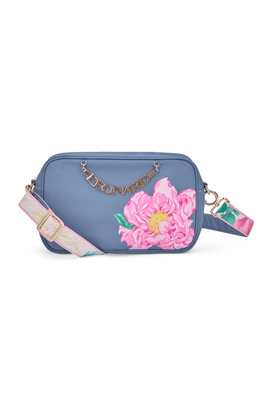 Crossbody bag with printed handle, floral front design & gold logo chain TU