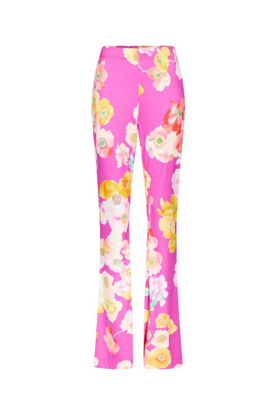 Long flare pants with elastic waistband