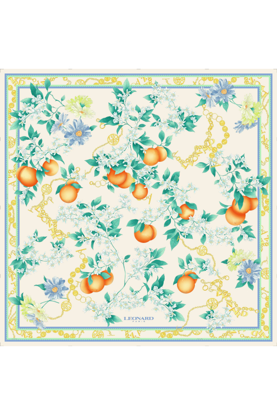 100% silk square, hand-rolled Dimensions: 35.5 inches x 35.5 inches