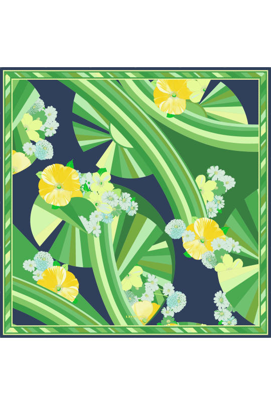 Châle en Twill de soie, roulotté à la main. (140 cm x 140 cm)