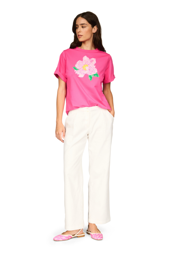 T-shirt à manches courtes, encolure ronde, imprimé fleur et logo sur le devant. Longueur taille 36 : 62 cm 34 à 44